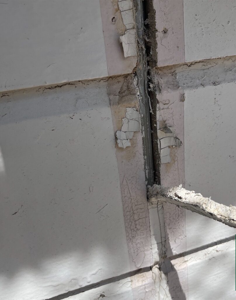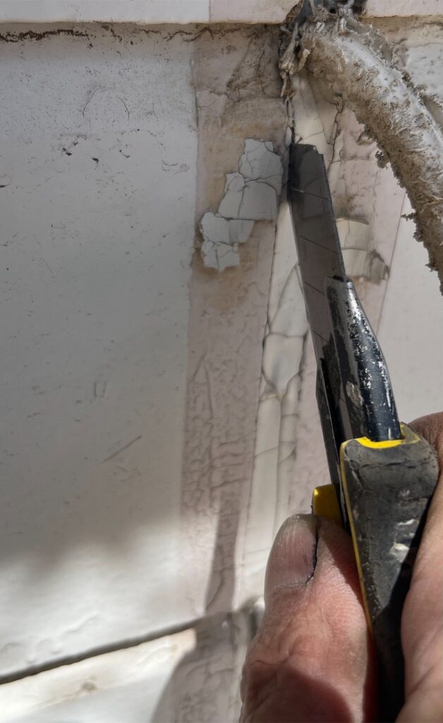 今回の写真は、古くなった目地シーリングを撤去している場面です。